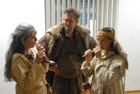 Auftritte entweder mit paläolithischen Flötenrepliken oder anderen Steinzeitinstrumenten im Steinzeitkostüm